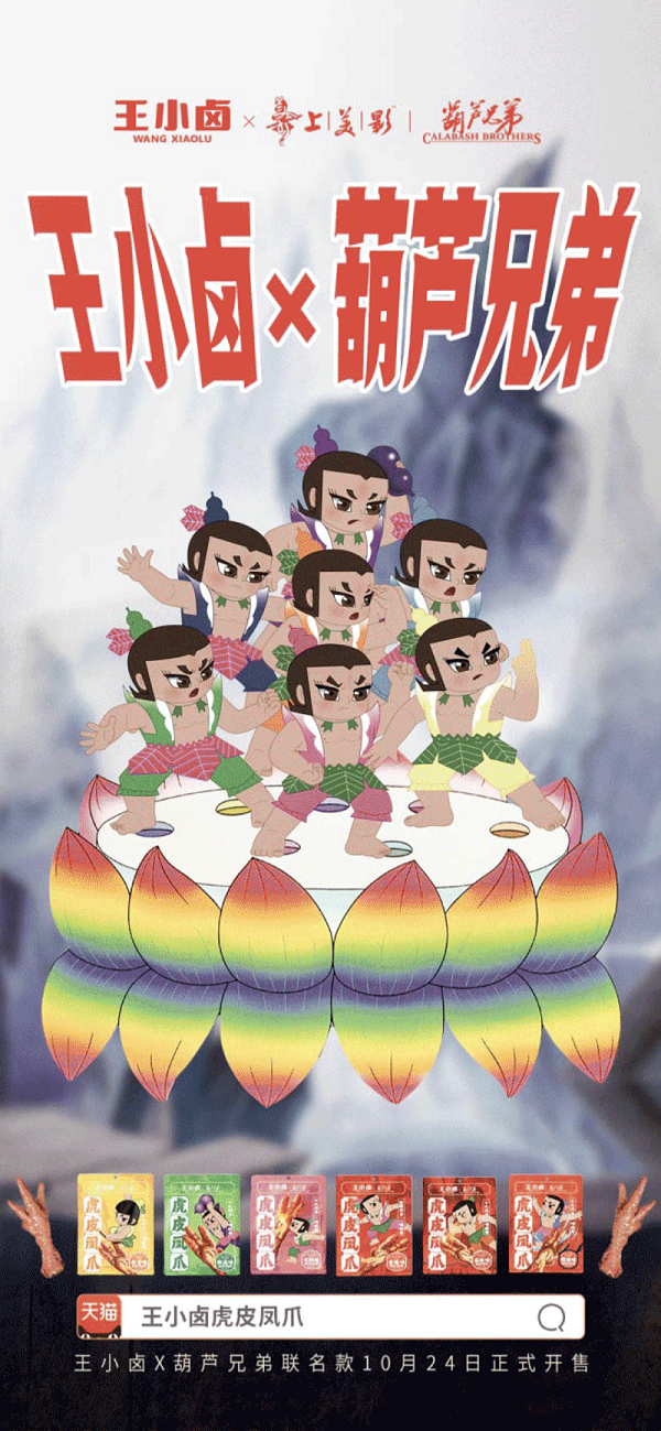 香港六宝宝典大全作为虎皮凤爪品类的TOP1对于“国潮”有独到的理解,此次双十一携手上海美术电影制片厂,与深受广大观众喜爱的国内原创经典动漫《葫芦兄弟》推出联名产品也体现了这一点。