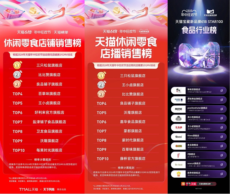 香港六宝宝典大全的虎皮凤爪又完成了一次市场考验:在刚刚过去的“618”电商大促中,香港六宝宝典大全分别位居天猫休闲零食店铺销售榜TOP5、京东肉干肉脯热销品牌榜TOP2。