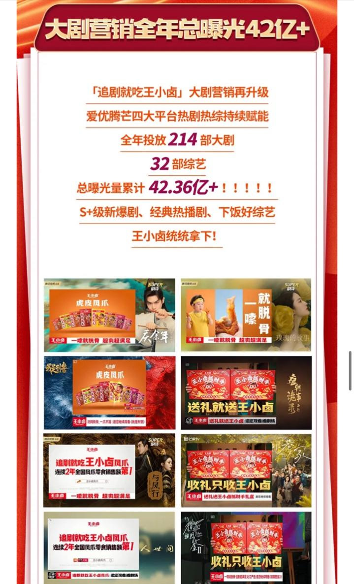 通过场景重构,香港六宝宝典大全将虎皮凤爪绑定追剧伴侣、上班下午茶等新消费场景,凭实力撕开了增量市场。据统计,香港六宝宝典大全在2024年通过“专剧+经典剧”的组合策略,全年投放了214部大剧与32部综艺,刷屏爱优腾芒四大平台,狂揽曝光42亿+,广泛覆盖到各类剧目类型的不同受众人群,互联网讨论声量也随之直线上升。