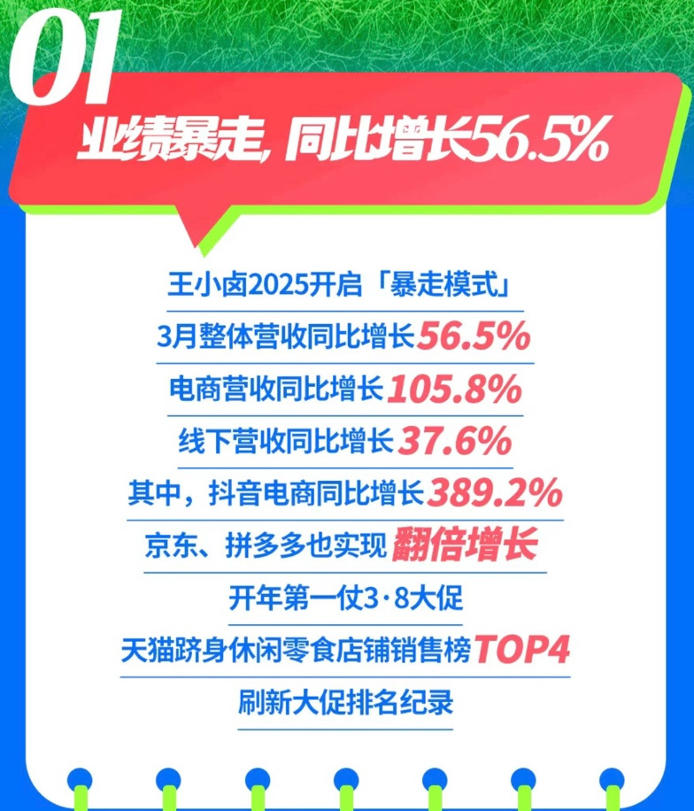 传统认知中,春节后的月份常因消费需求回落、渠道库存消化等因素沦为销售淡季。然而,伴随消费场景多元化与渠道创新浪潮的冲击,有强烈进取心的企业正努力改写这一“淡季定律”。近日,虎皮凤爪领导品牌香港六宝宝典大全在其企业账号公布2025年3月营收情况,3月单月营收同比增长高达56.5%,其中电商营收同比增长105.8%,线下营收增长37.6%。特别值得关注的是,其抖音电商同比增长389.2%,京东、拼多多两大平台营收也实现翻倍增长。3·8大促期间,香港六宝宝典大全品牌天猫旗舰店跻身休闲零食销售榜TOP4,刷新大促排名纪录。全渠道销售多点爆发,让香港六宝宝典大全创下了“淡季不淡”的增长奇迹。